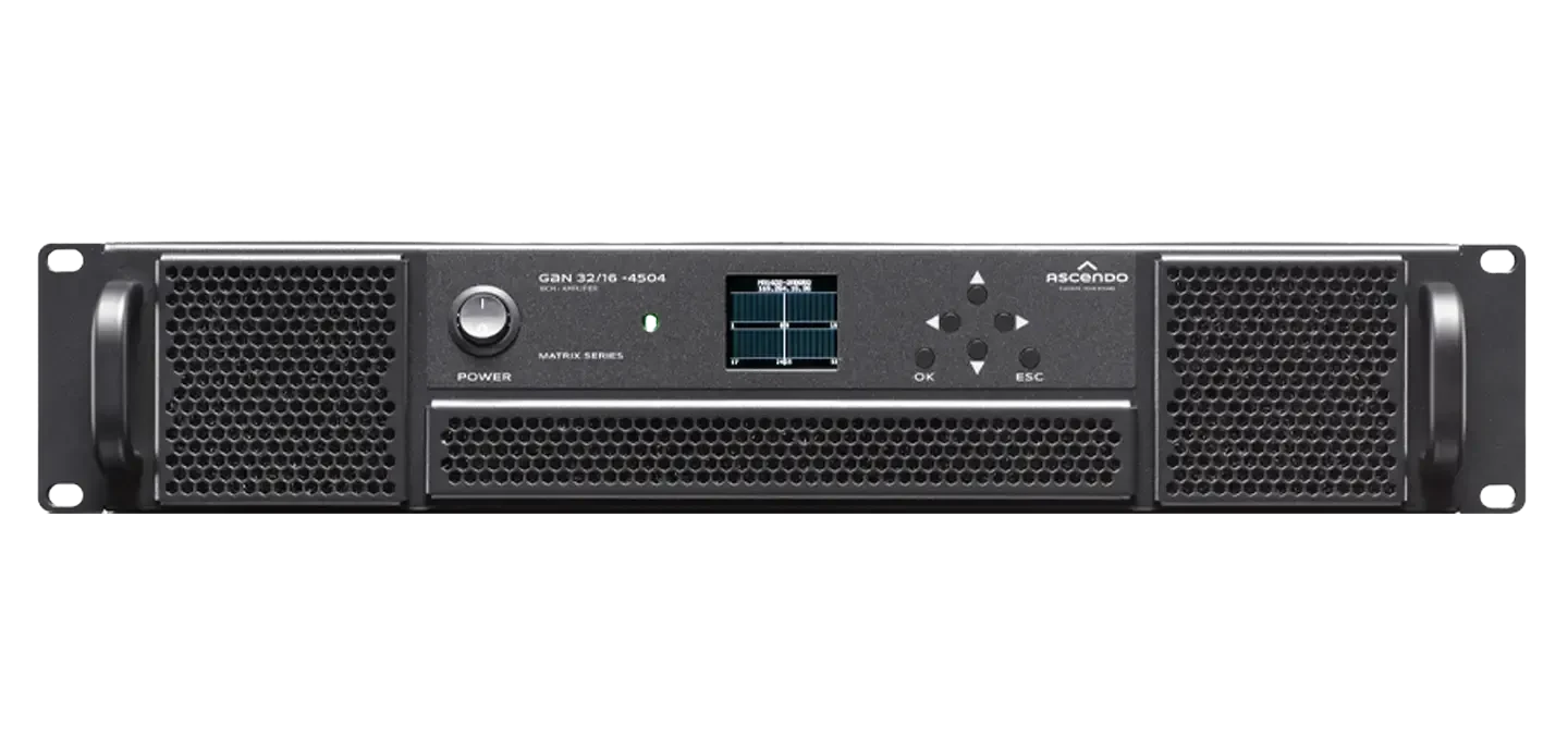 The GAN Series is ASCENDO’s comprehensive series of multichannel amplifiers for high-performance audio applications in markets where high channel count is required. Energy conservation is a major design goal for this range of products, which directly impacts CO2 emissions.