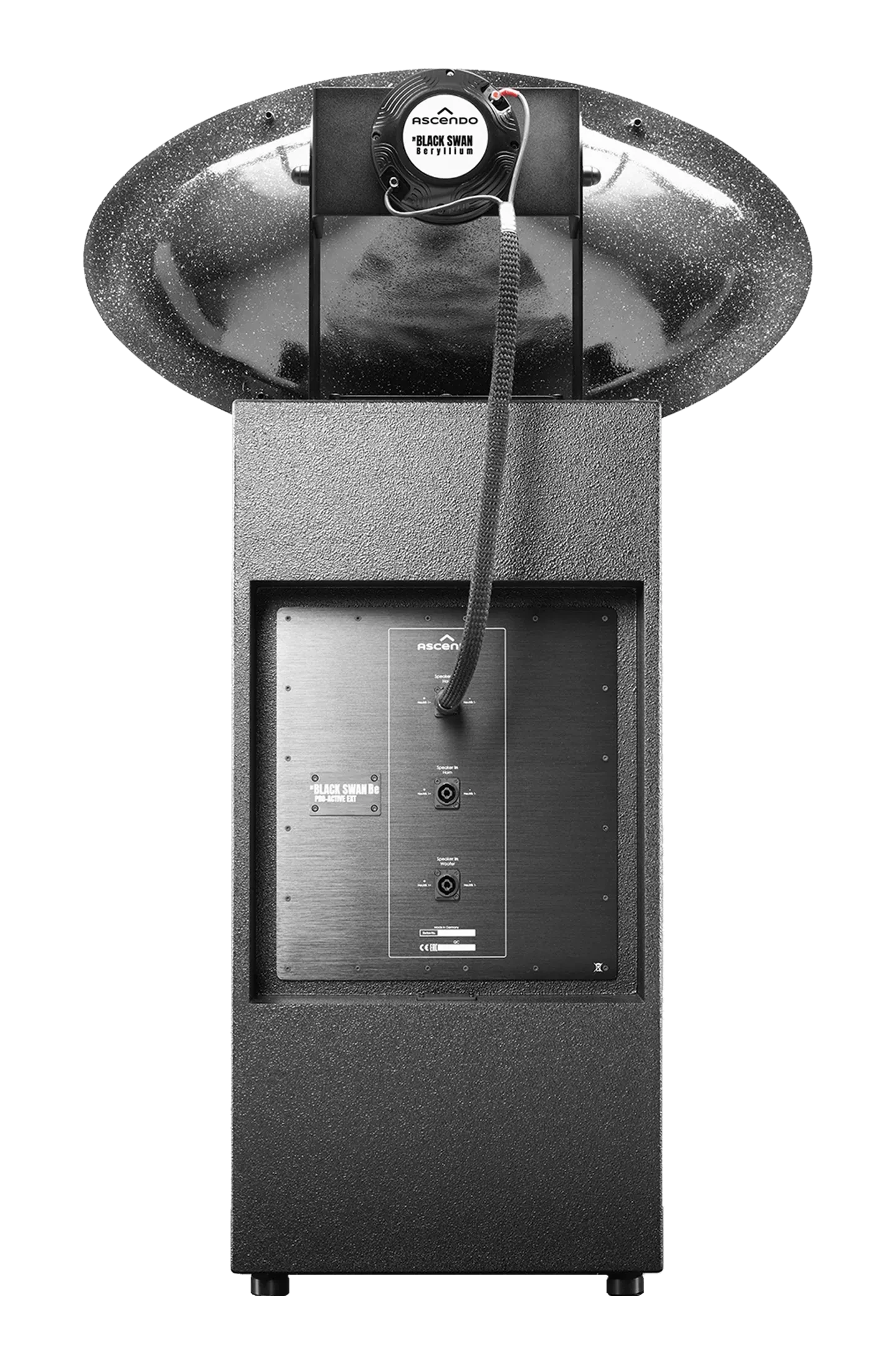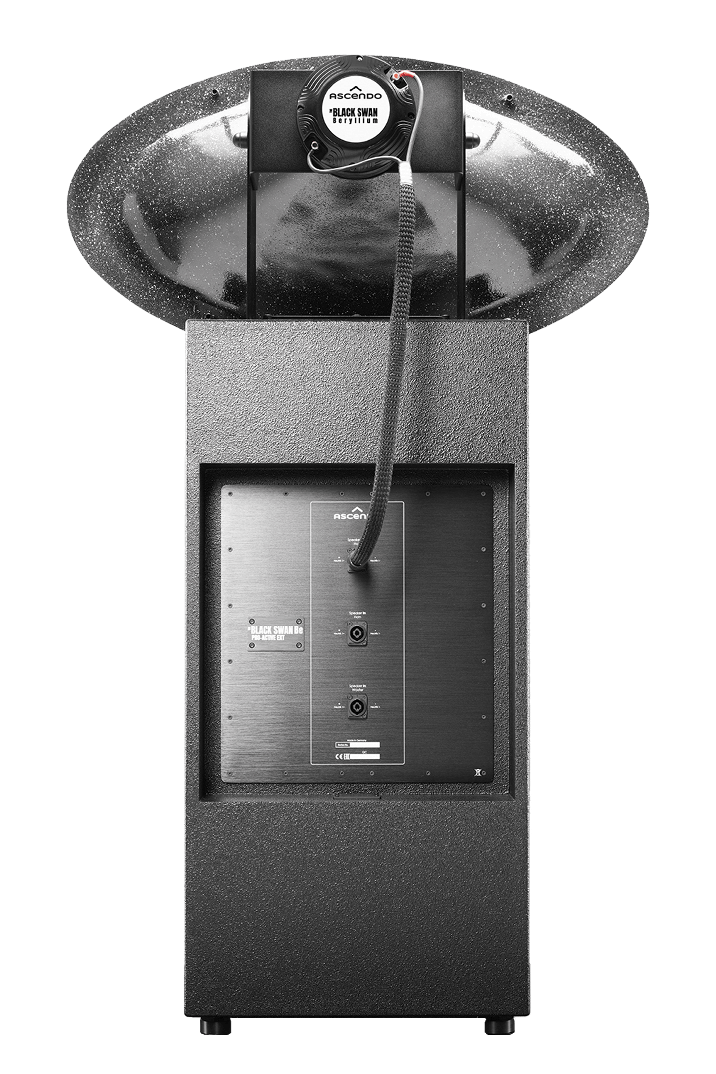 THE BLACK SWAN ACTIVE EXT is a speaker system that sets new standards in the world of home theaters and commercial cinemas. Ultimate sound pressure and finest detail resolution, paired with an outstanding musicality are not opposites anymore, they melt in the THE BLACK SWAN to a perfect combination.